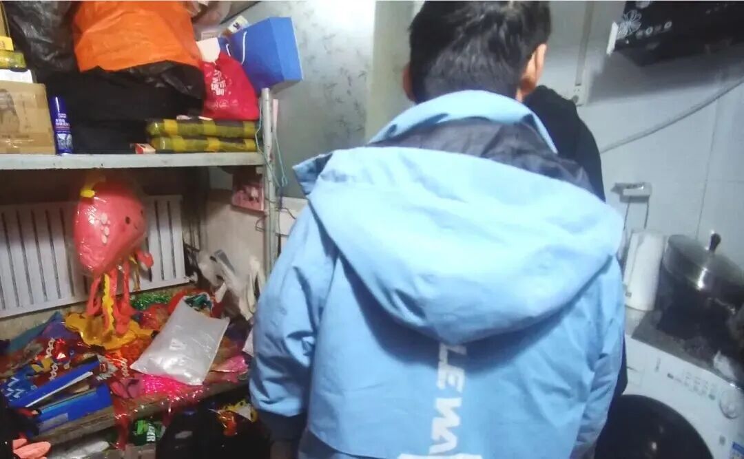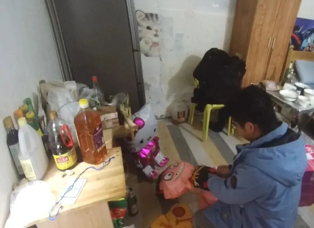 男子在民房内私自制作氢气球。